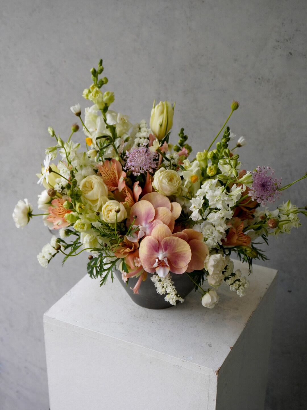 頂いた情報を元に当フローリストが一輪一輪に想いを込め、お客様のお気持ちが何倍にも大きくなるようゼロからデザインをさせていただいております。